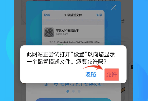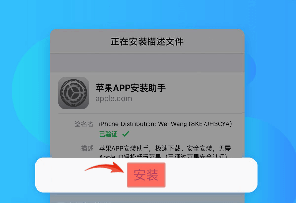 2.iPhone手机点击安装完返回桌面,如下载完成则点击设置>>通用>>描述文件(iOS9上叫“描述文件”, iOS10上叫“设备管理),找到刚才同名的描述文件安装即可